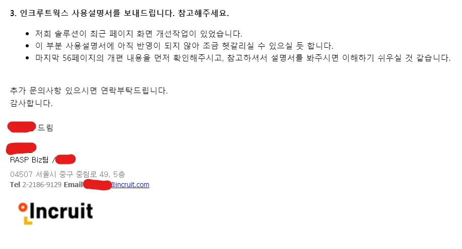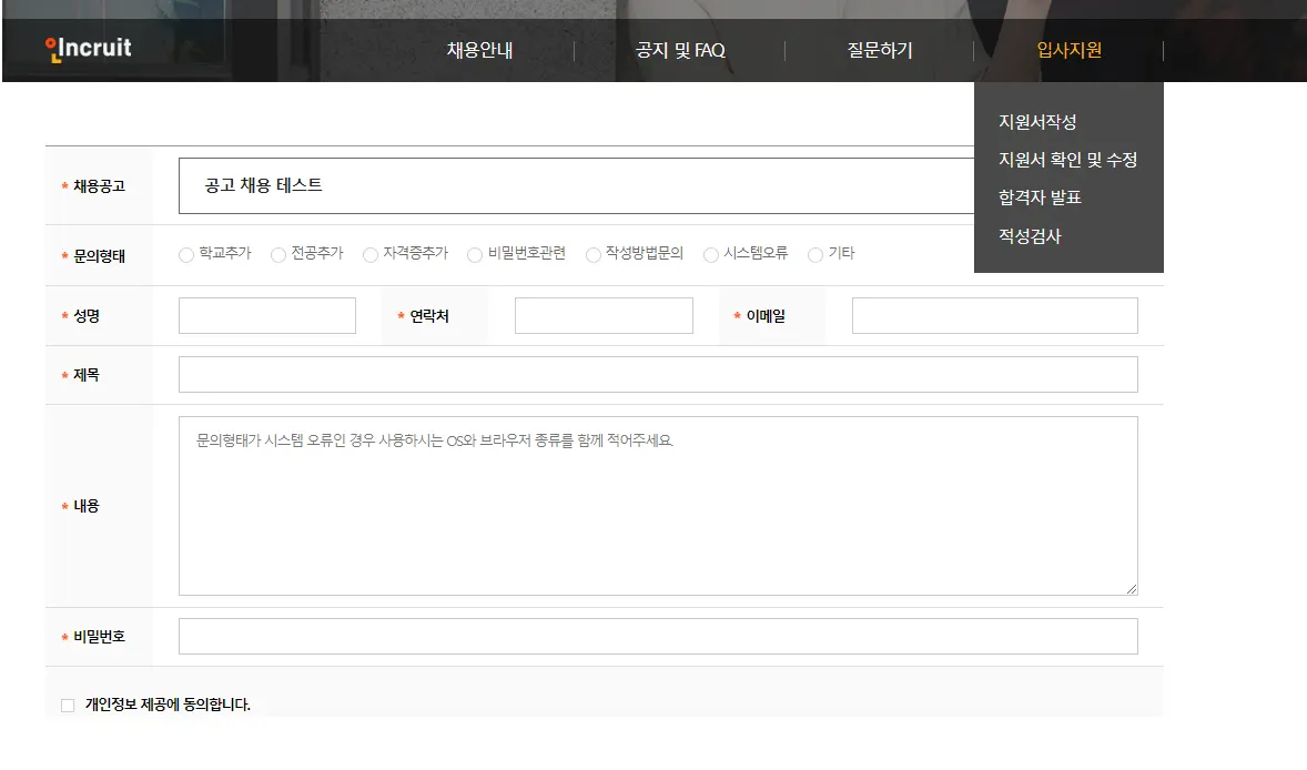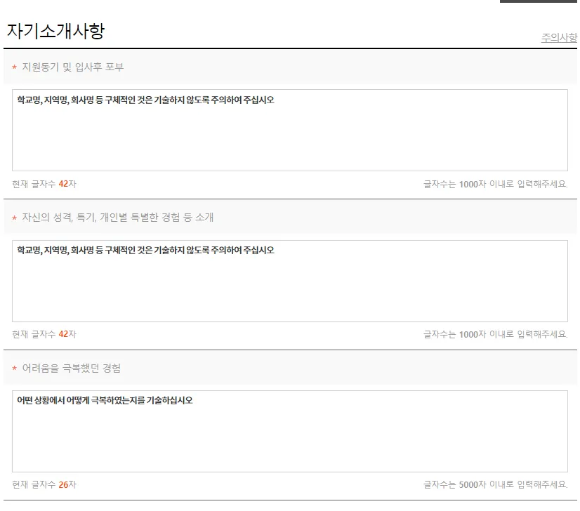 ▲단순히 필자와 자소서 내용을 이메일로 주고받는 형식이 아닌 실제로 필자가 만든 입사지원서에 해당 사항에 입력하고 제출하는 형식으로 진행합니다.